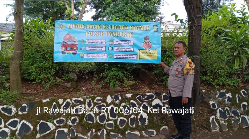 Jakarta Selatan- Polsek Pancoran, Bhabinkamtibmas Kelurahan Rawajati, Aiptu Nurcholis, telah melaksanakan kegiatan himbauan kamtibmas dan himbauan mudik serta pemasangan spanduk mudik aman keluarga nyaman di wilayah Kelurahan Rawajati, Kecamatan Pancoran.