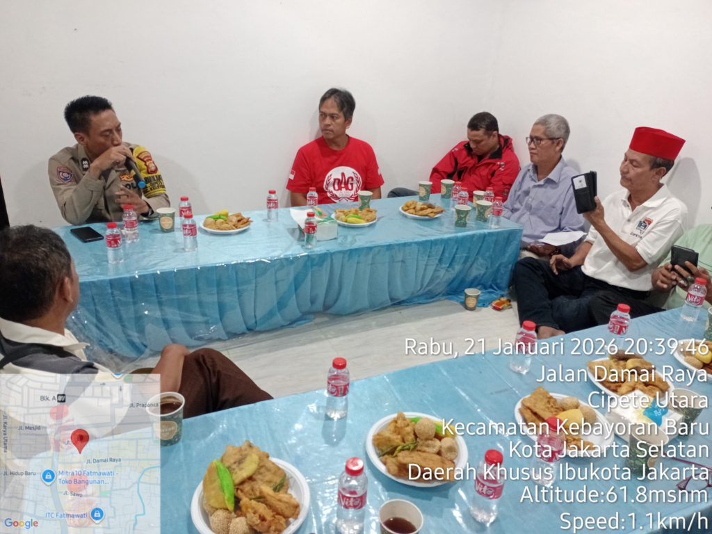 Jakarta Selatan — Dalam rangka menjaga situasi keamanan dan ketertiban masyarakat (kamtibmas), Bhabinkamtibmas Kelurahan Cipete Utara, Aiptu Denny Anggoro, menghadiri pertemuan rutin bulanan warga yang dilaksanakan pada Rabu, 21 Januari 2026, bertempat di Jl. Dwi Warna RT 12 RW 01, Kelurahan Cipete Utara, Kecamatan Kebayoran Baru, Jakarta Selatan.