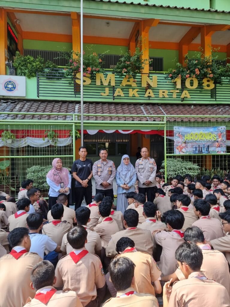 Jakarta Selatan – Polsek Pesanggrahan bersama jajaran Polda Metro Jaya terus menggencarkan program Police Goes to School sebagai upaya pembinaan dan penyuluhan kepada pelajar. Kegiatan kali ini dilaksanakan di SMA Negeri 108, Jalan Ulujami Raya, Kelurahan Ulujami, Kecamatan Pesanggrahan, Jakarta Selatan, Rabu (24/9/2025) pagi.