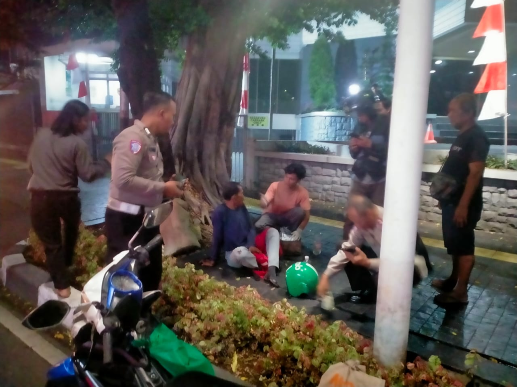 Sekitar pukul 22:25 WIB, anggota Laka Lantas yang terdiri dari dua personel yang dipimpin Aipda Suyanto, serta tiga anggota Polsektro Kebayoran Baru yang dipimpin Iptu Iwan Subekti, SH, tiba di lokasi. Mereka menemukan pengendara sepeda motor, Ade Suryana (lahir 1 Januari 1968), duduk di trotoar dengan luka robek di pelipis kiri dan bagian wajah. Sementara itu, korban pejalan kaki, Juriyanto (lahir 1 Januari 1962), mengalami luka pada pelipis kanan. Kedua korban segera dibawa ke Puskesmas Blok O untuk mendapatkan perawatan medis.