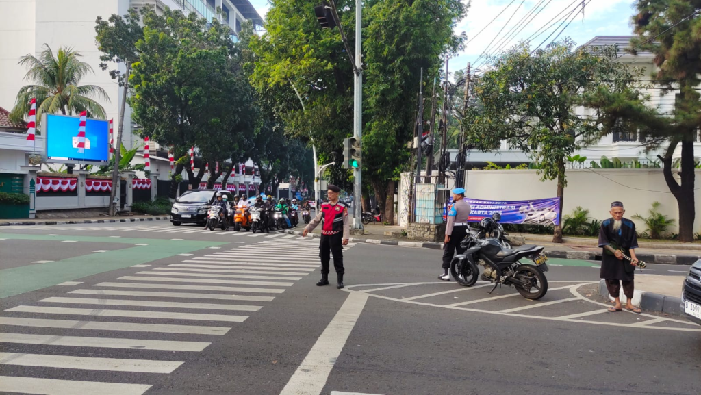 Jakarta Selatan – Samapta Polsek Metro Kebayoran Baru, yang dipimpin oleh Iptu Purwono sebagai Kasunit Patroli, melaksanakan kegiatan pengaturan lalu lintas di sejumlah titik strategis di Kebayoran Baru Jakarta Selatan. Bersama anggota Aiptu Sugito, Aiptu Asep Ramdani, dan Briptu Cahyo, mereka berkomitmen untuk menjaga kelancaran arus lalu lintas dan memastikan keselamatan pengguna Selasa,6/8/2025.