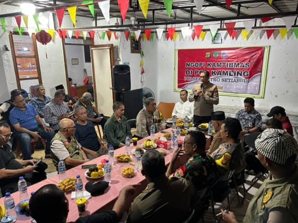 Jakarta Selatan – Bertempat di di Poskamling RW 04, Kelurahan Pasar Manggis, Kecamatan Setiabudi, Jakarta Selatan, pukul 20.05 WIB, Kapolsek Metro Setiabudi, AKBP Ardiansyah, S.H., M.H., didampingi Bhabinkamtibmas Kelurahan Pasar Manggis Aiptu Joko Edi Saputro dan Bhabinkamtibmas Kelurahan Guntur Aipda Dimas Bagus menggelar acara Ngopi Kamtibmas bersama warga setempat. Acara ini menjadi momen penting bagi Kapolsek yang baru menjabat selama dua minggu empat hari, untuk memperkenalkan diri sekaligus mempererat hubungan dengan masyarakat.