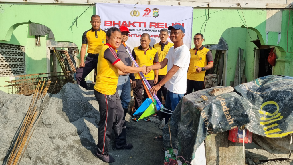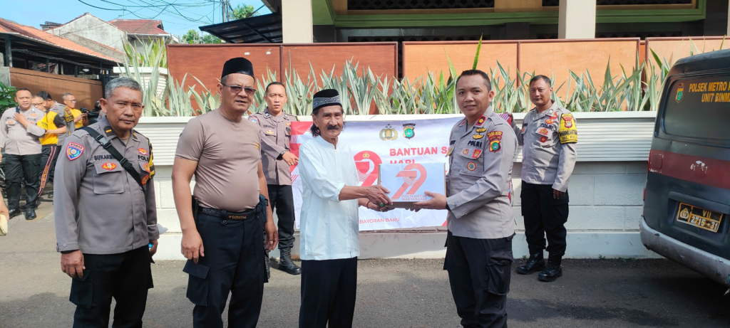 Penyerahan bantuan sosial dari Polres Metro Jakarta Selatan kepada panitia pembangunan mushollah sebagai bentuk dukungan terhadap peningkatan fasilitas ibadah.