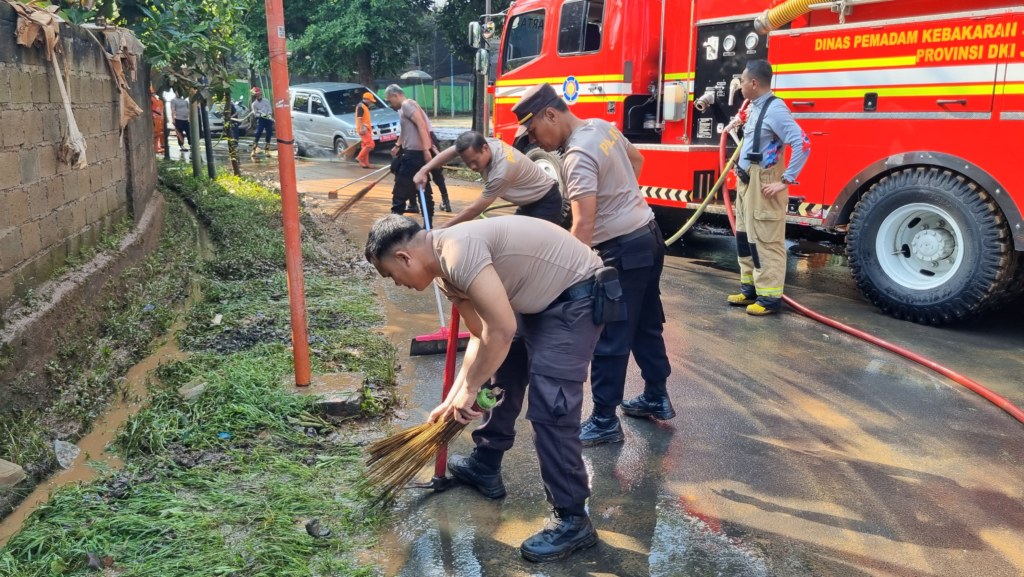 Jakarta Selatan – Pasca-banjir yang melanda wilayah Jakarta Selatan, jajaran Polsek Pesanggrahan bersama instansi terkait turun langsung membantu warga dalam upaya pemulihan lingkungan. Pada Jumat (7/3/2025) pagi, personel kepolisian melaksanakan kerja bakti membersihkan sisa banjir di Komplek IKPN Bintaro RW 004, Kelurahan Bintaro, Kecamatan Pesanggrahan.