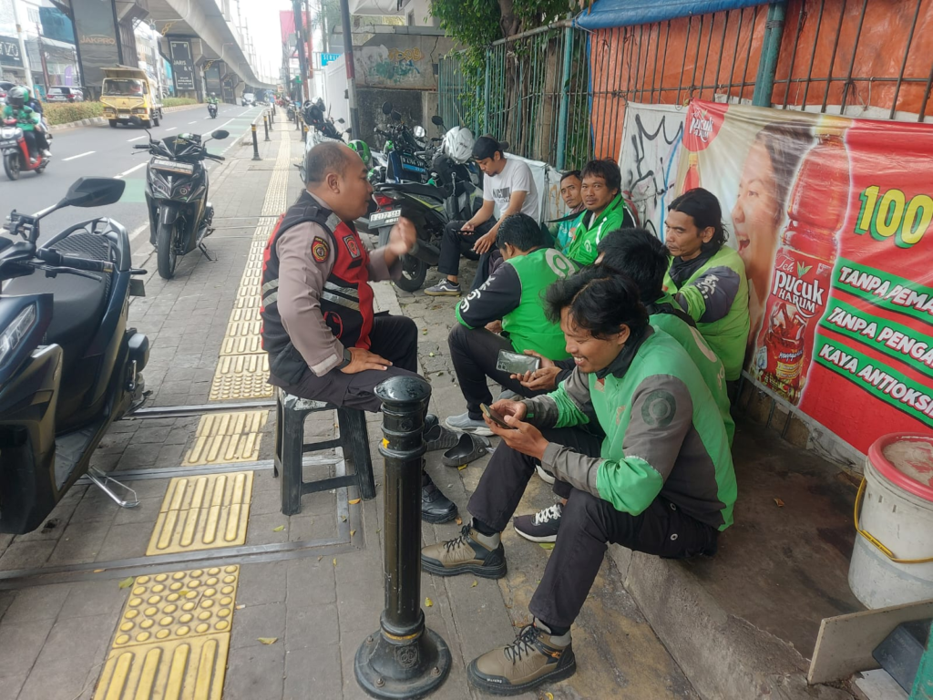 • Panit II Samapta Polres Metro Jakarta Selatan Patroli Dialogis Dengan Pengemudi Ojek Online