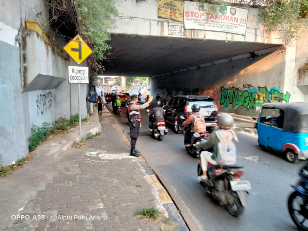 • Personel Samapta Polsek Tebet Laksanakan Pengaturan Lalu Lintas dan Himbauan Kamtibmas di Terowongan Manggarai