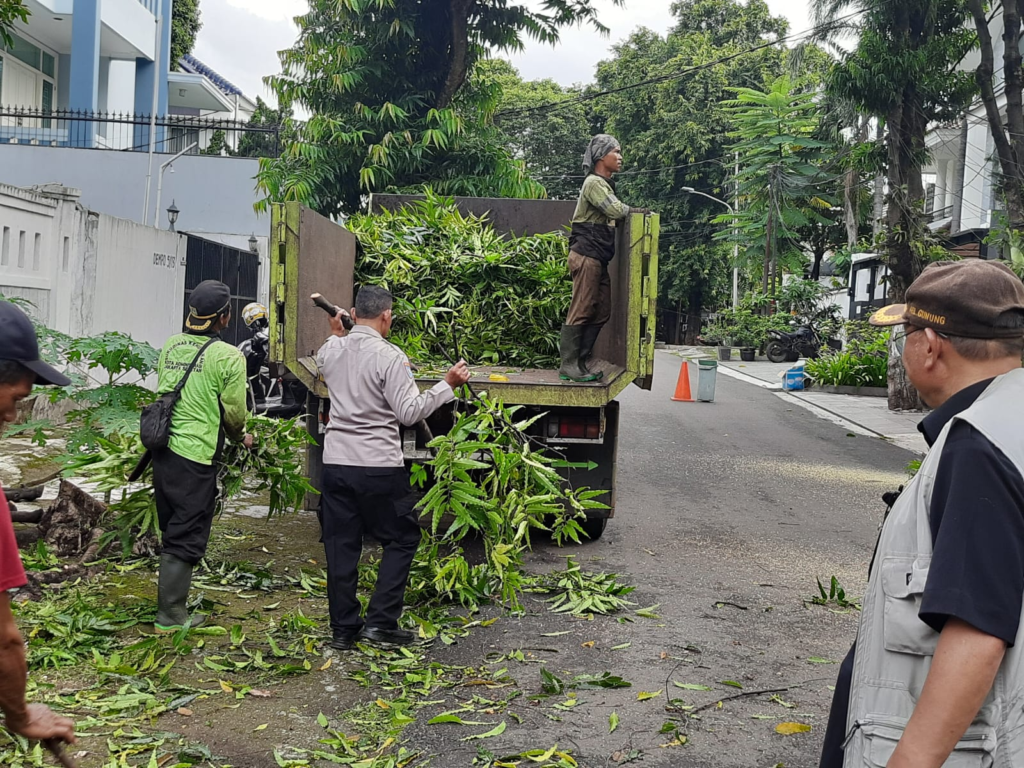 Jakarta Selatan — Bhabinkamtibmas Kelurahan Gunung, Aiptu Mahmud, bersama Forum Kewaspadaan Dini Masyarakat (FKDM) dan petugas keamanan lingkungan, bergerak cepat menindaklanjuti laporan adanya pohon tumbang yang membahayakan pengguna jalan di wilayah Kebayoran Baru.