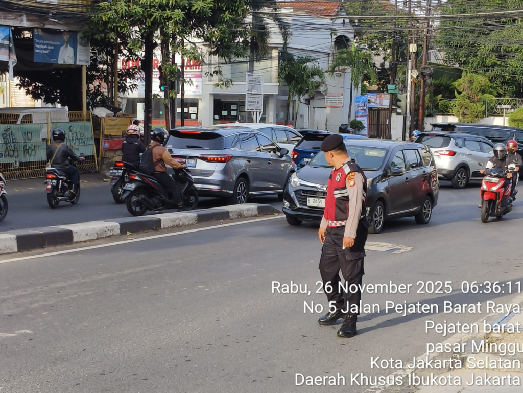 Jakarta Selatan, 26 November 2025 – Polsek Pasar Minggu Polres Metro Jakarta Selatan melaksanakan patroli jalan kaki dan pengaturan lalu lintas di pagi hari sebagai upaya menjaga ketertiban dan mencegah pelanggaran lalu lintas seperti lawan arus. Kegiatan berlangsung di sekitar Tugu Sajam Pasar Minggu, dimulai pukul 06.30 WIB hingga selesai yang dilaksanakan oleh Aiptu Sarnadi dari unit Samapta.