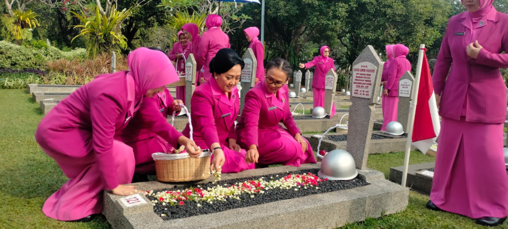 Kegiatan ziarah yang dimulai sejak pukul 06.00 WIB tersebut merupakan agenda rutin tahunan Bhayangkari sebagai bentuk penghormatan dan penghargaan atas jasa-jasa para pahlawan yang telah gugur mendahului.